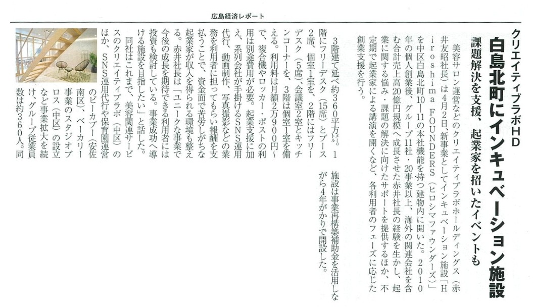 CREATIVE LAB 【プレスリリース】起業を目指すクリエイターがつながり、学び合う新たなコミュニティ『Hiroshima FOUNDERS』誕生 2025年3月吉日 CREATIVE LAB HOLDINGS 経済産業省・事業再構築補助金に採択 起業を目指すクリエイターがつながり、 学び合う新たなコミュニティ『Hiroshima FOUND… 2025年3月25日